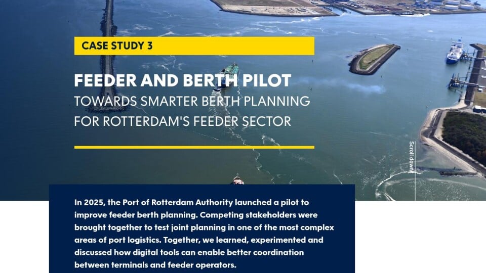 In 2025, the Port of Rotterdam Authority launched a pilot to improve feeder berth planning. Competing stakeholders were brought together to test joint planning in one of the most complex areas of port logistics. Together, we learned, experimented and discussed how digital tools can enable better coordination between terminals and feeder operators.