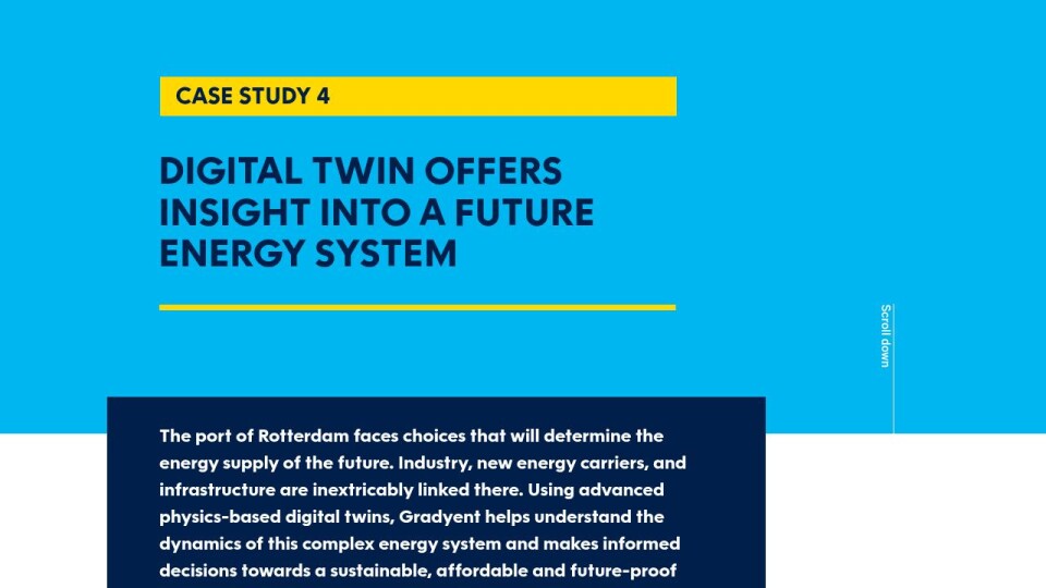 The port of Rotterdam faces choices that will determine the energy supply of the future. Industry, new energy carriers, and infrastructure are inextricably linked there. Using advanced physics-based digital twins, Gradyent helps understand the dynamics of this complex energy system and makes informed decisions towards a sustainable, affordable and future-proof energy system – for Rotterdam and far beyond.