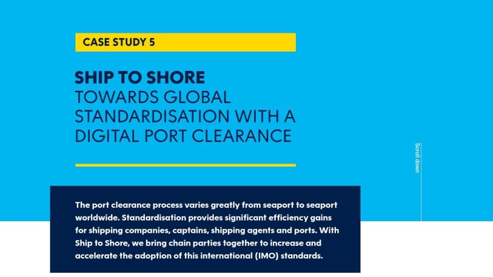 The port clearance process varies greatly from seaport to seaport worldwide. Standardisation provides significant efficiency gains for shipping companies, captains, shipping agents and ports. With Ship to Shore, we bring chain parties together to increase and accelerate the adoption of this international (IMO) standards.
