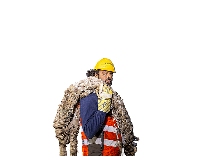 Van jongs af aan wist Jens: ik wil buiten werken, op het water. ‘Ik kan niet stilzitten, dat is niks voor mij.’ Na een start in de binnenvaart stapte hij op zijn achttiende over naar de Koninklijke Roeiers Vereeniging Eendracht (KRVE). ‘Wij maken de schepen vast aan de kade. En gooien de trossen ook weer los’, vat Jens zijn werk samen.