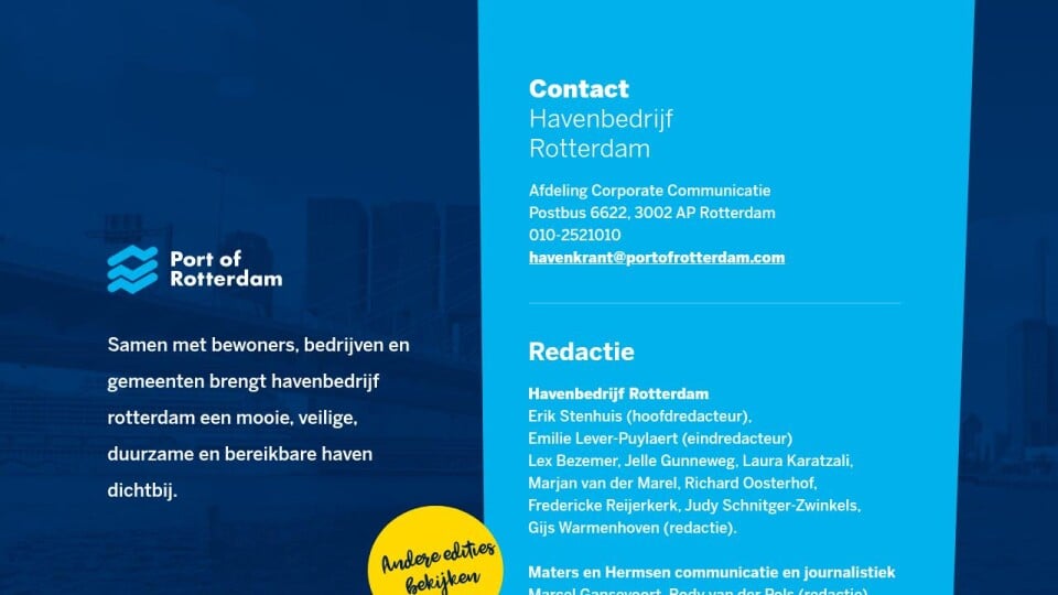 Samen met bewoners, bedrijven en gemeenten brengt havenbedrijf rotterdam een mooie, veilige, duurzame en bereikbare haven dichtbij.