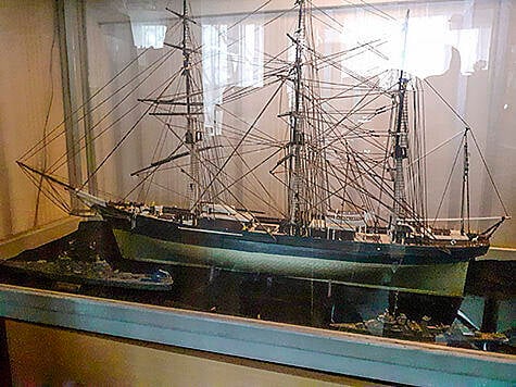 Zelfbenoemd ‘schepengek’ Jan Nadorp heeft de legendarische theeklipper Cutty Sark in de vitrine staan. Hij kocht het model op zijn zestiende, nu bijna zeventig jaar geleden, van zijn overwerkgeld ( 60 gulden). Toen had hij op zijn slaapkamer al een hele vensterbank vol scheepsmodellen staan. Het model verwondert hem nog altijd. ‘Dat gepriegel, daar houd ik wel van.’