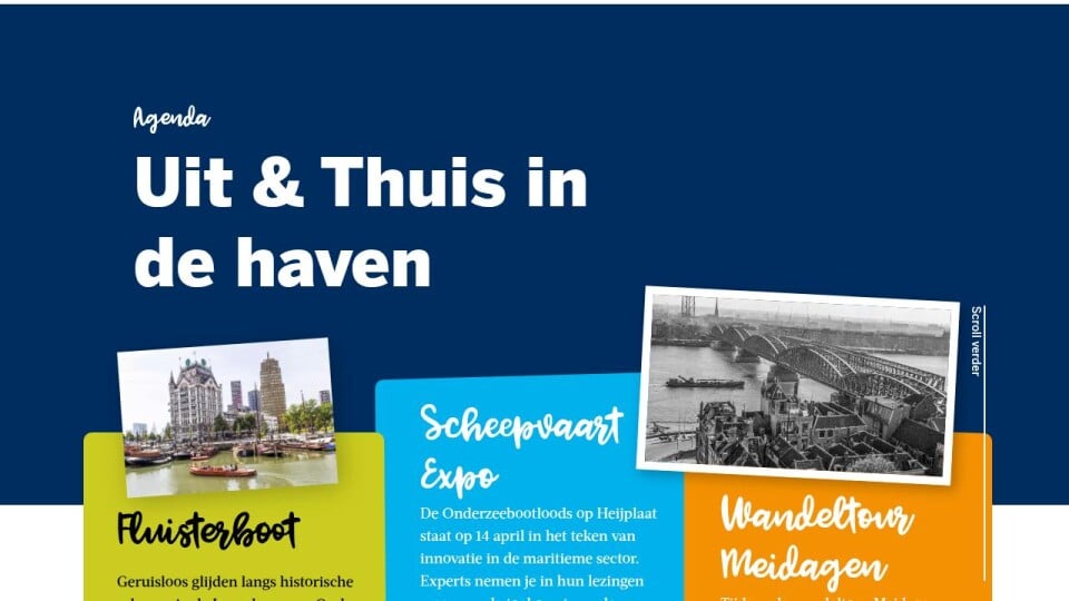 Tijdens de wandeltour Meidagen 1940 neemt militair historicus Wouter Hagemeijer je mee langs plekken waar in mei 1940 om Rotterdam werd gevochten. De route voert langs onder meer het Noordereiland en de Oude Haven. Start bij Museum Rotterdam ’40-’45 NU. Data: 12 en 25 april. Meer info op: museumrotterdam.nl