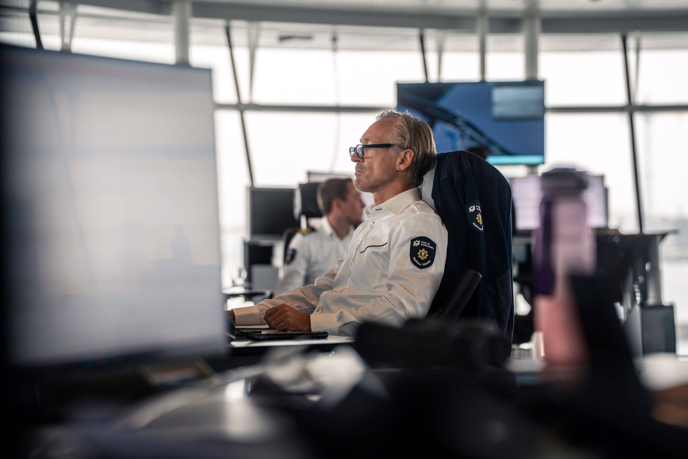 ‘What all falls under the Harbour Master’s Division?’ René summarises: ‘The Harbour Coordination Centre (HCC) is the beating heart of planning. The VTS operators are based in the Rotterdam Traffic Centre (Botlek) and the Hoek van Holland Traffic Control Centre; these colleagues guide traffic via radar and VHF. Then there is Shipping Inspection & Safety, with teams on harbour patrol boats handling incidents. Port Security monitors port security and compliance with the ISPS Code. Finally, Support & Policy oversees legal frameworks, nautical policy and public reporting.’